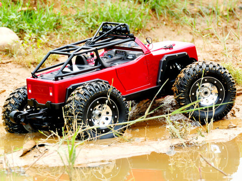 The Thunder Tiger team is proud to unveil the new 1/14 Crawler KAISER XS. Don’t be fooled by the exquisite exterior of the KAISER XS, this crawler can pack a punch. The 4-link suspension system, center of gravity configuration concentrated along the mid-lines, and high torque 4X4 transmission enables the KAISER XS to navigate and conquer all types of terrain and challenges. The front wheels deploys dense CVA metal as universal shaft, enabling your KAISER XS to be fearless of any interference of gravel, muddy, or sandy roads. They come factor assembled, so you just need to charge up the batteries, pick up the remote control, and brace yourself for loads of excitement and fun.