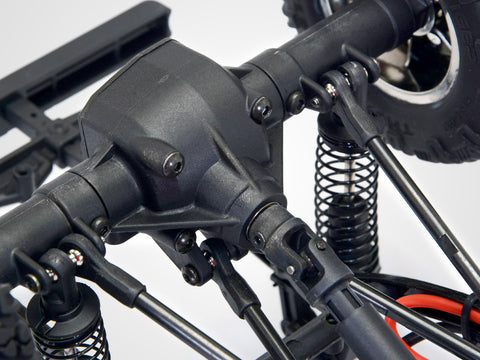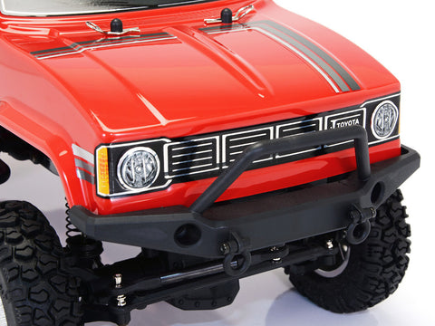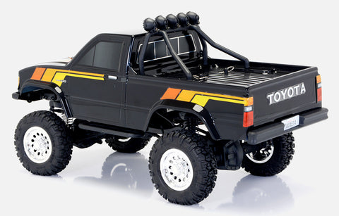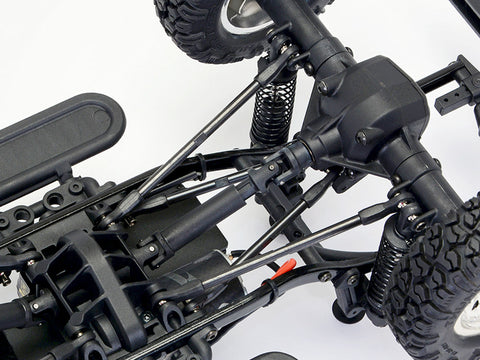 The TOYOTA HILUX 1/12 pick-up truck uses the 4-link suspension system for both the front and rear wheels, reducing overall weight and allowing it to withstand shocks. It also allows it to sustain maximum traction for optimal vehicle handling performance, making it an ideal candidate for off-road climbing.